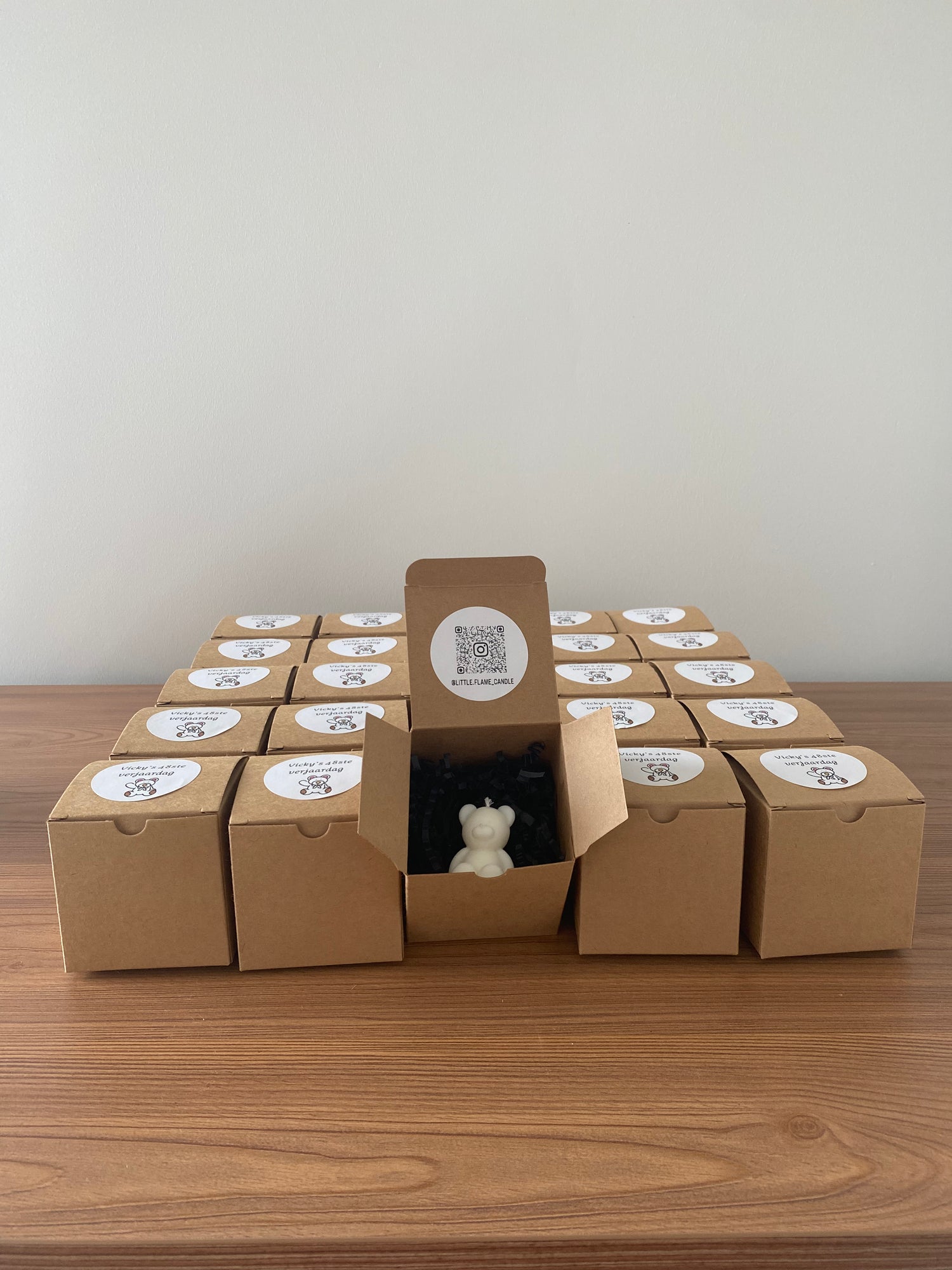 Maak je momenten nog specialer met onze gepersonaliseerde kaarsen! Of het nu voor een bruiloft, verjaardag, bedrijfsevenement of een uniek cadeau is. Wij bieden de mogelijkheid om jouw kaars te personaliseren. Voeg een persoonlijke boodschap of naam toe aan je unieke kaars. Onze handgemaakte kaarsen zijn niet alleen prachtig om te zien, maar ook een blijvende herinnering aan jouw speciale gelegenheid. Bestel nu en geef je kaars een persoonlijke touch.